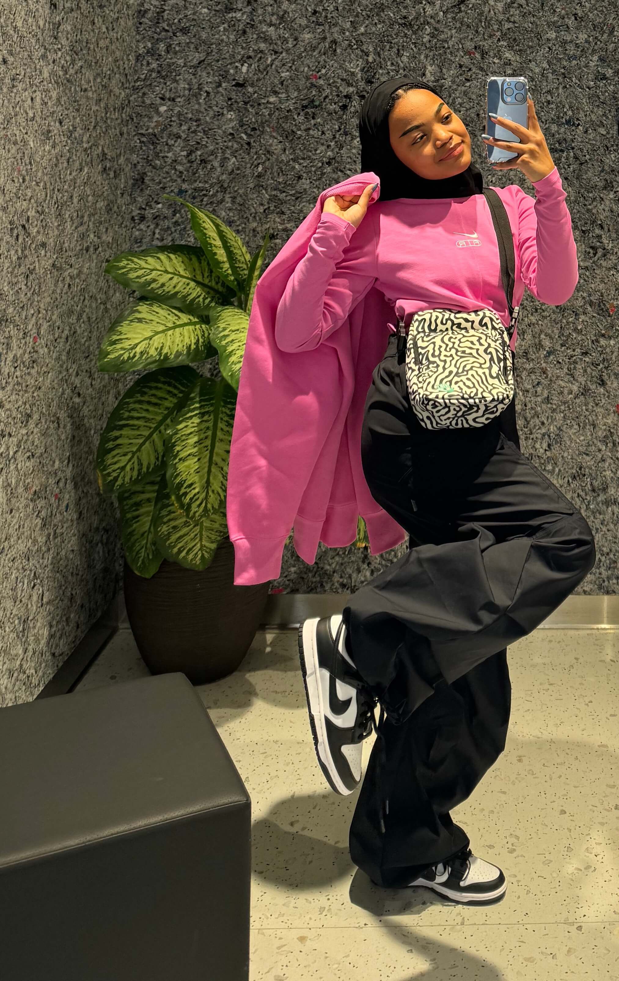 I really LOVE pink! I feel like I come to life, especially when paired with Dunks! Dunks are my faaaavourite. I already know that I’ll wear this look during the winter in Riyadh, when I’m out with my mom and sister doing fun outdoorsy things.